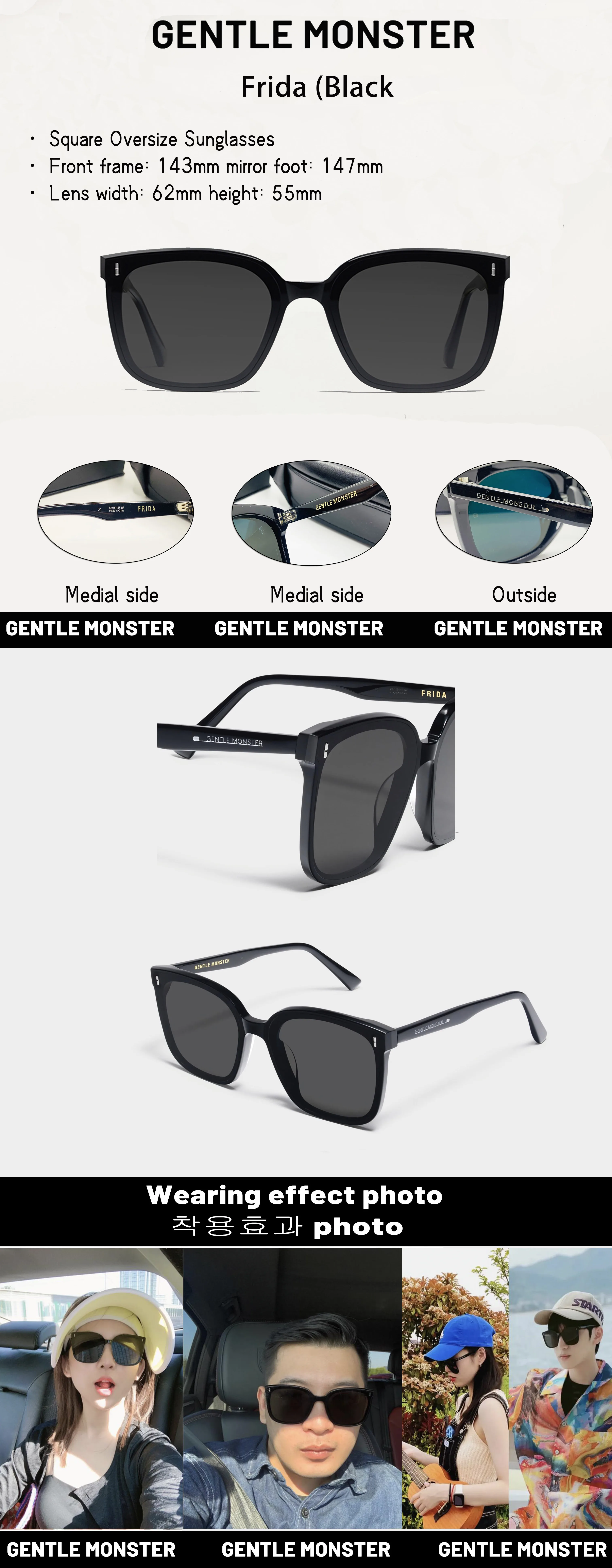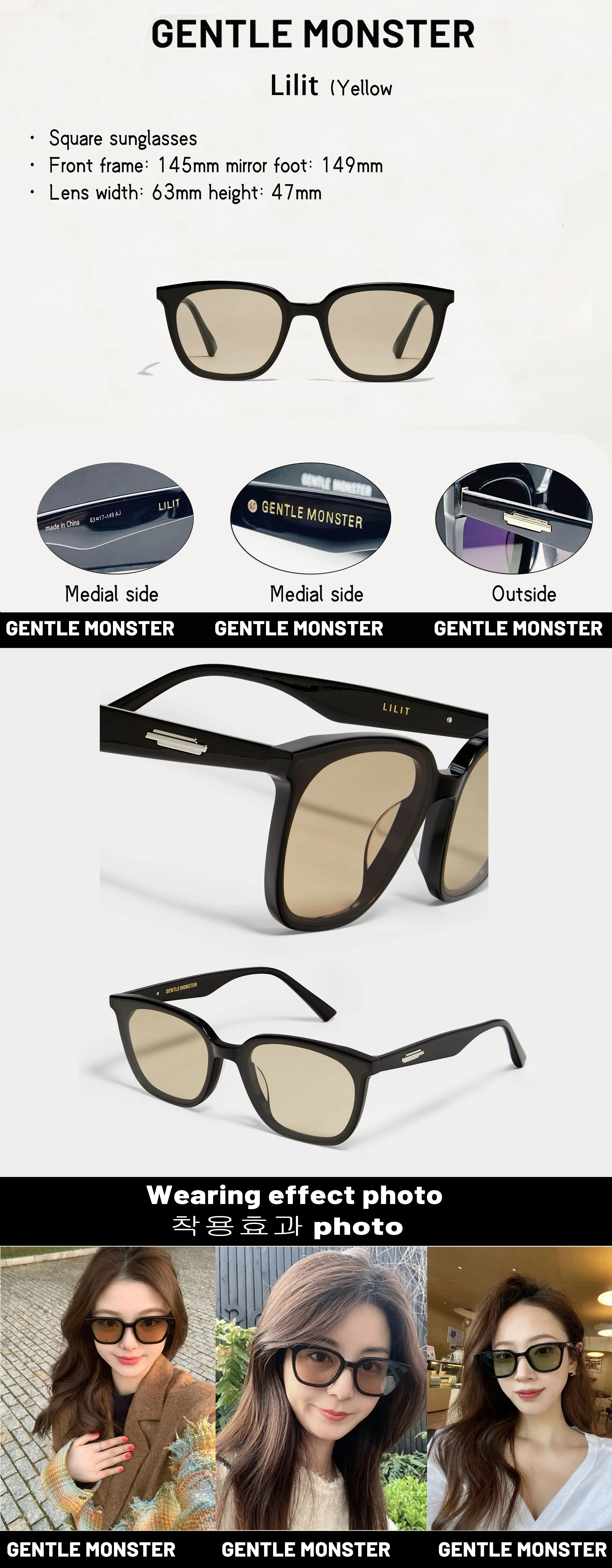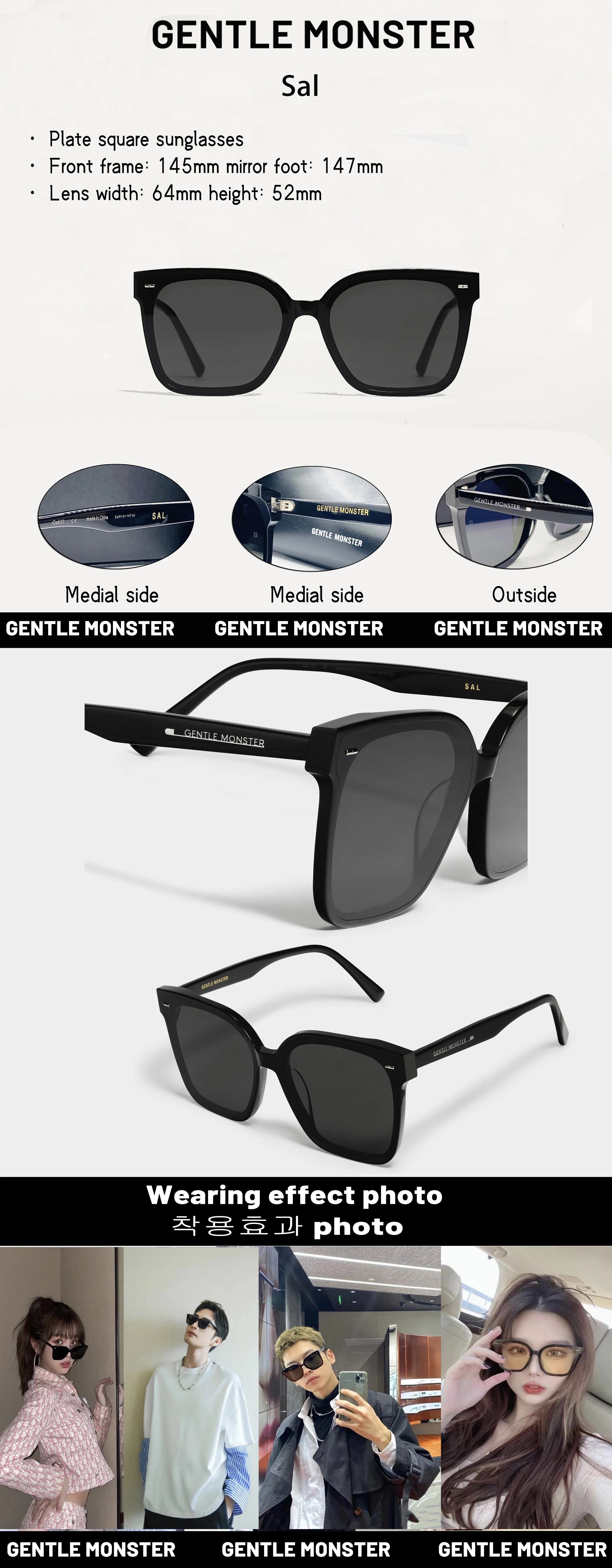 Dreamer 17 Sunglasses Collection Classic style square Flatbar sunglasses. No radian plane frame design curve and straight line bold integration, bring simple and capable feeling. The mirror has circular studs on both sides, and the mirror leg is engraved with a Gentle Monster logo. The lens provides efficient UV protection.