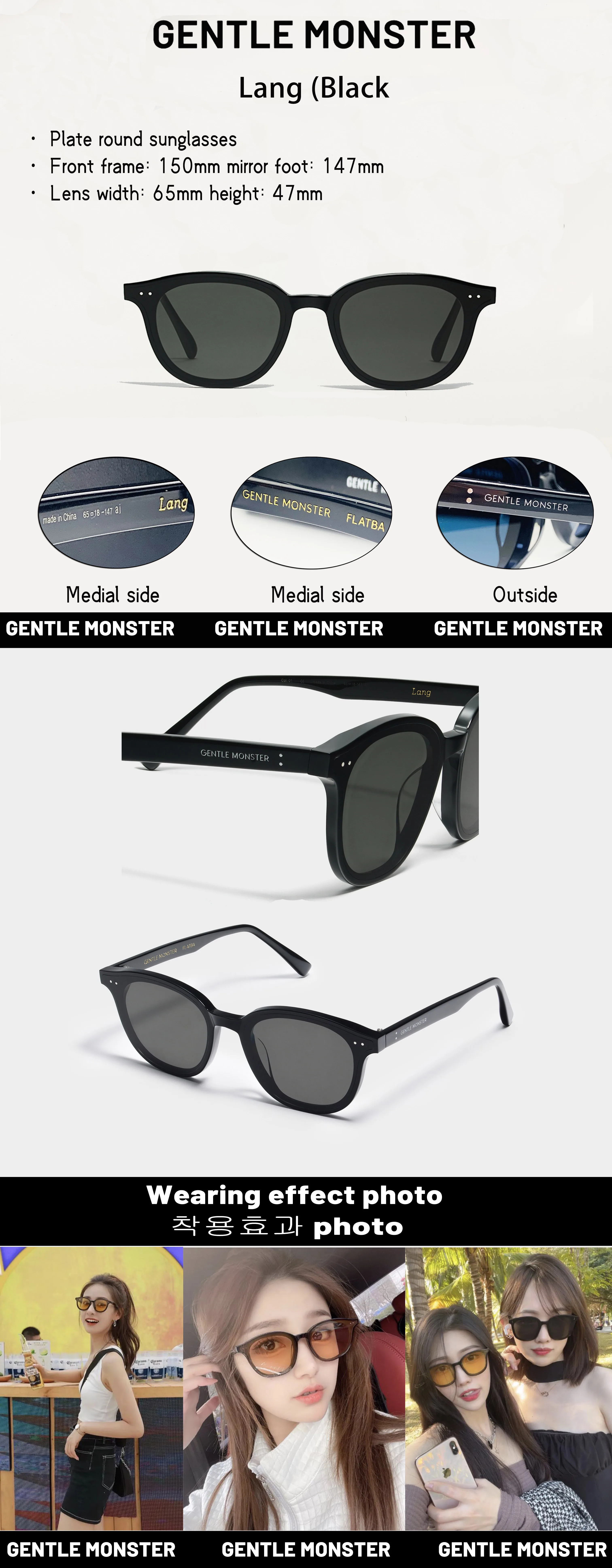Lang the round Flatbar sunglasses from the Sunglasses collection. The width of the frame is moderate, the overall line is soft and mellow, the two sides of the mirror are cleverly embellished with delicate studs, and the mirror leg is engraved with a Gentle Monster logo. Lenses provide high efficiency UV protection.