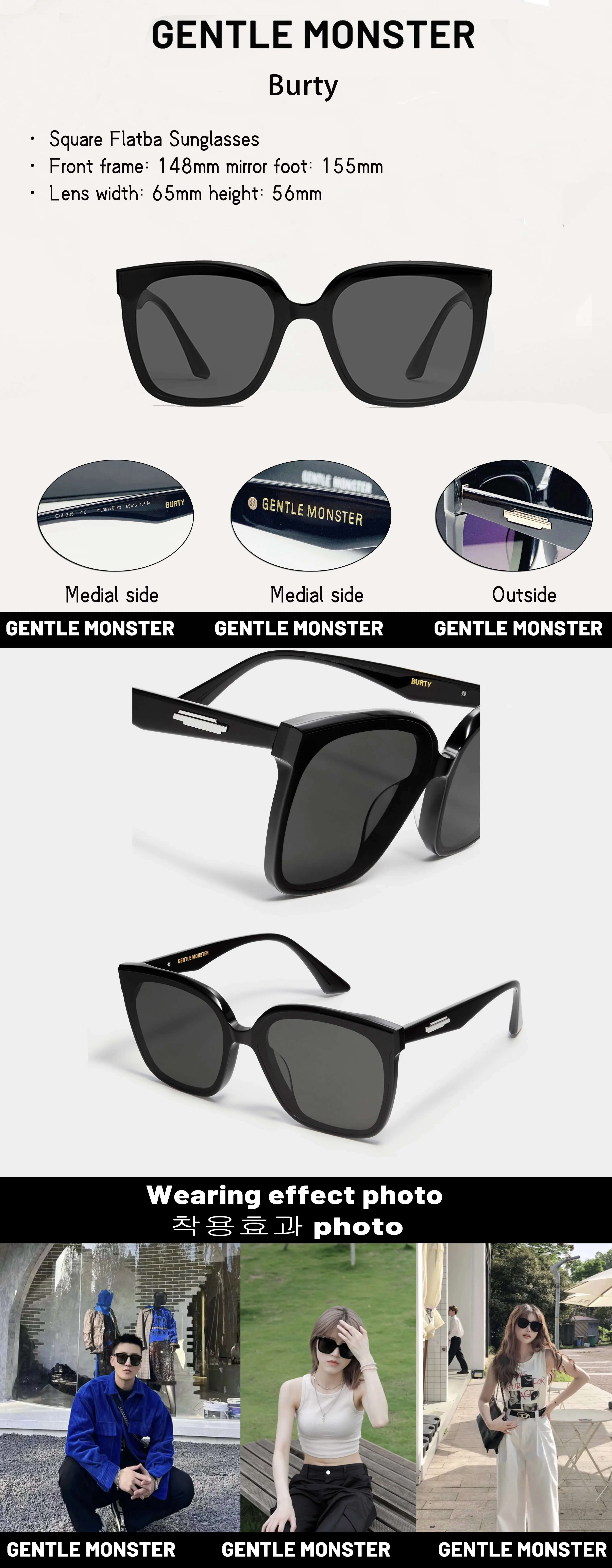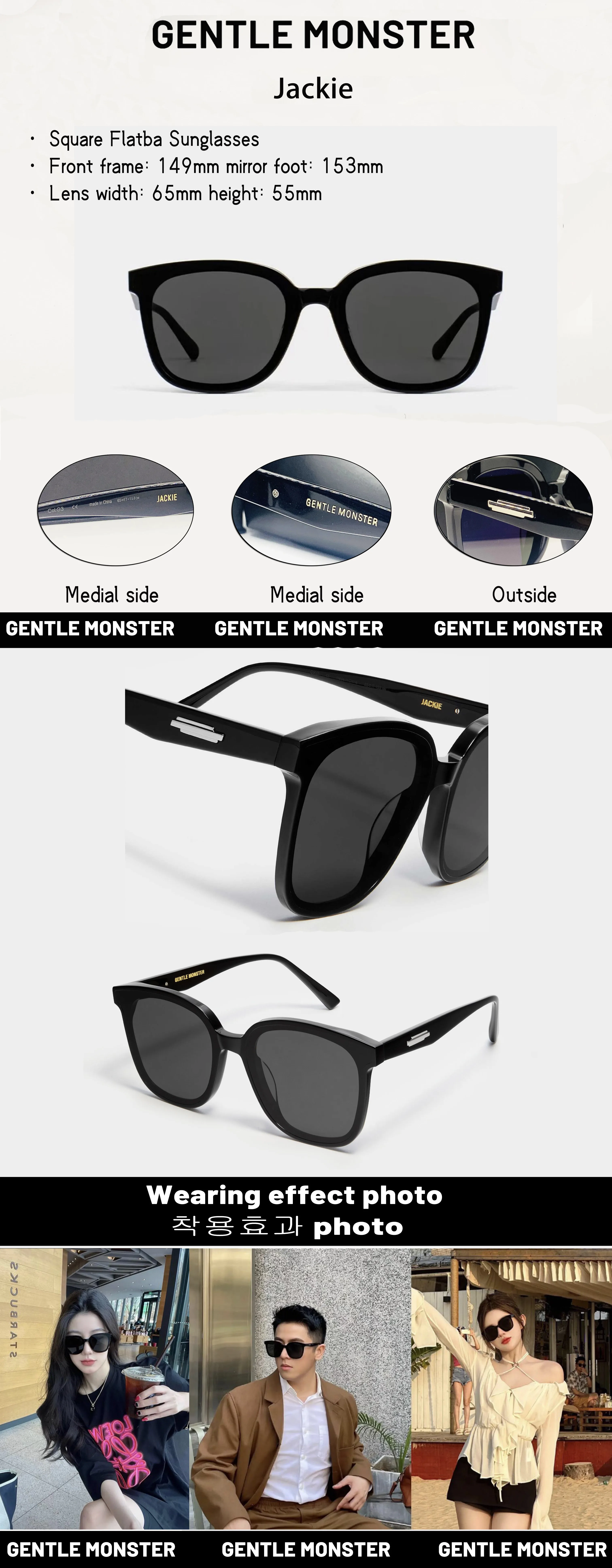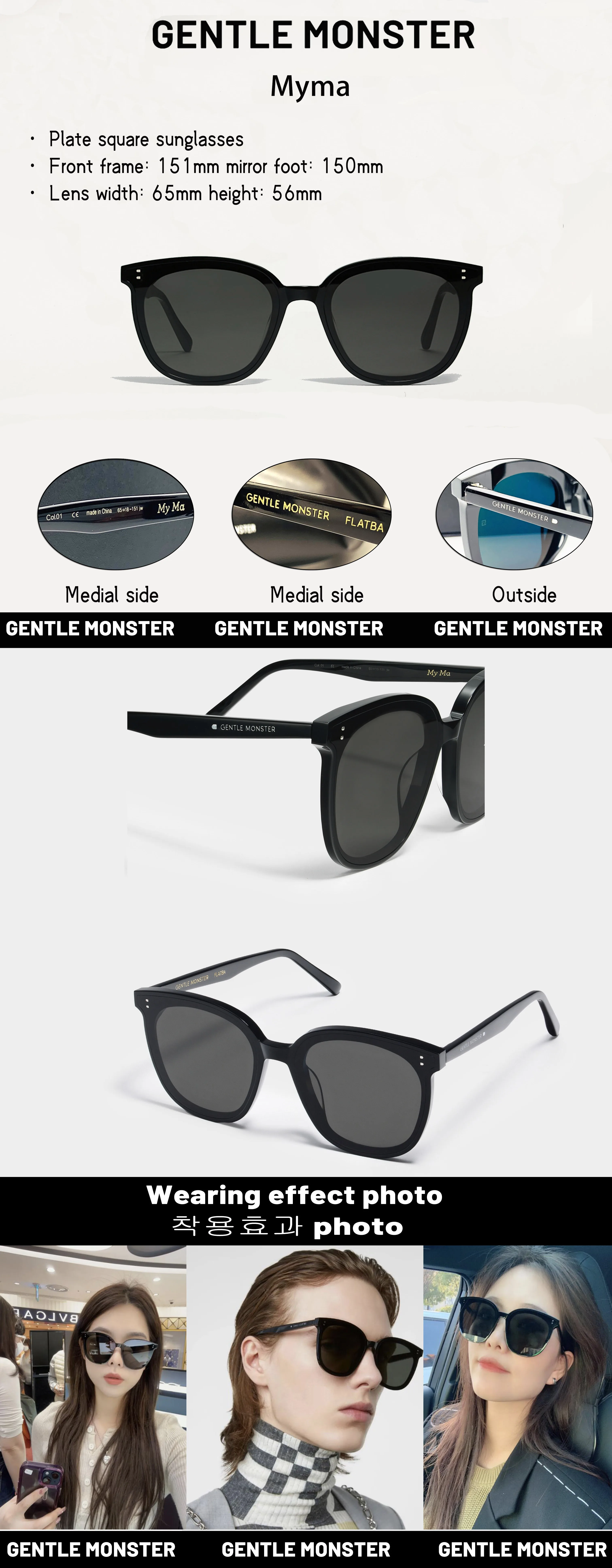 MY MA is the Flatbar sunglasses in the square shape of the sunglasses series. The overall frame line is smooth and neat. The two ends of the mirror are inlaid with decorative nails in the shape of bullets. The legs of the mirror are engraved with a Gentle Monster logo. The lenses provide efficient UV protection.
