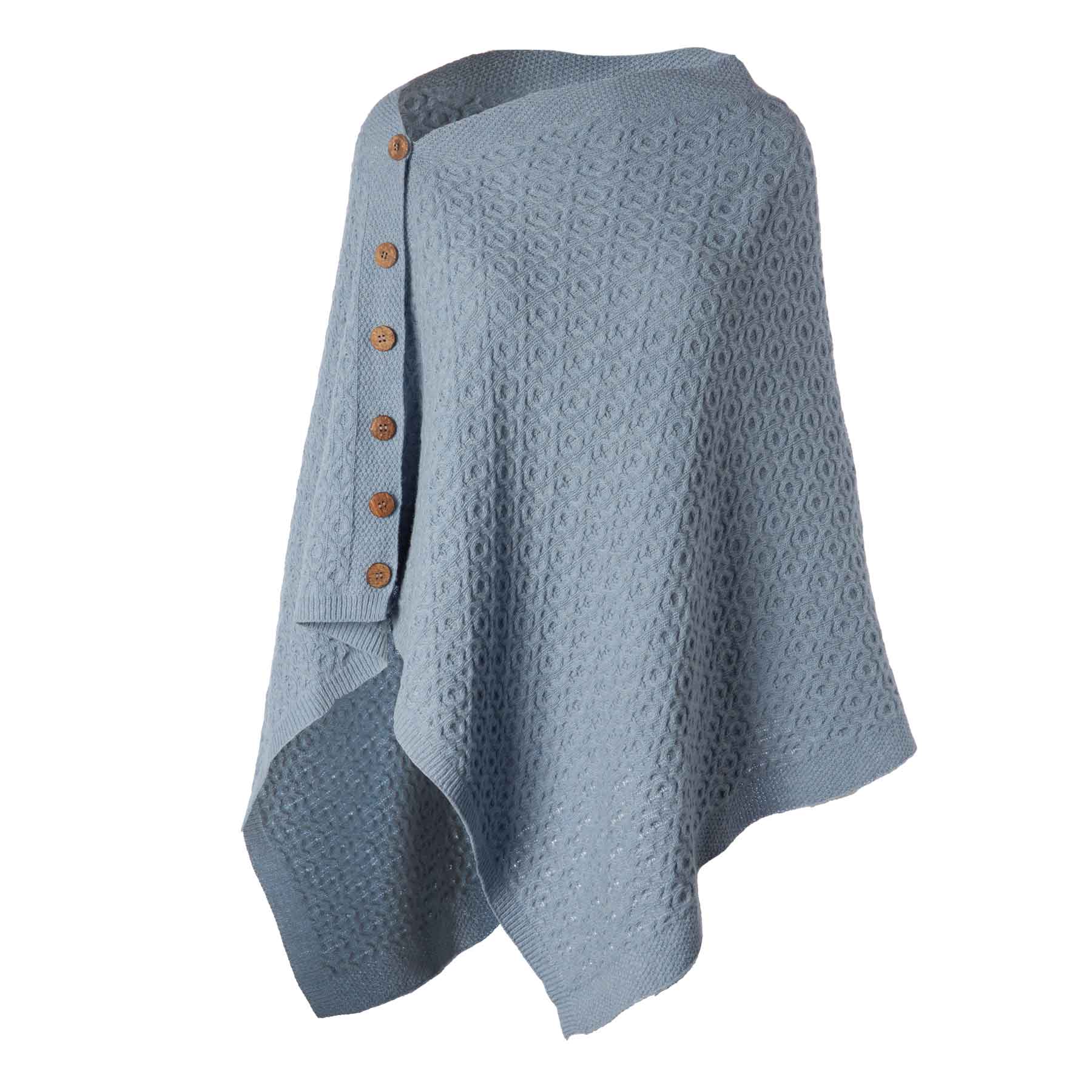 Lambswool Aran Knit Poncho- Light Blue