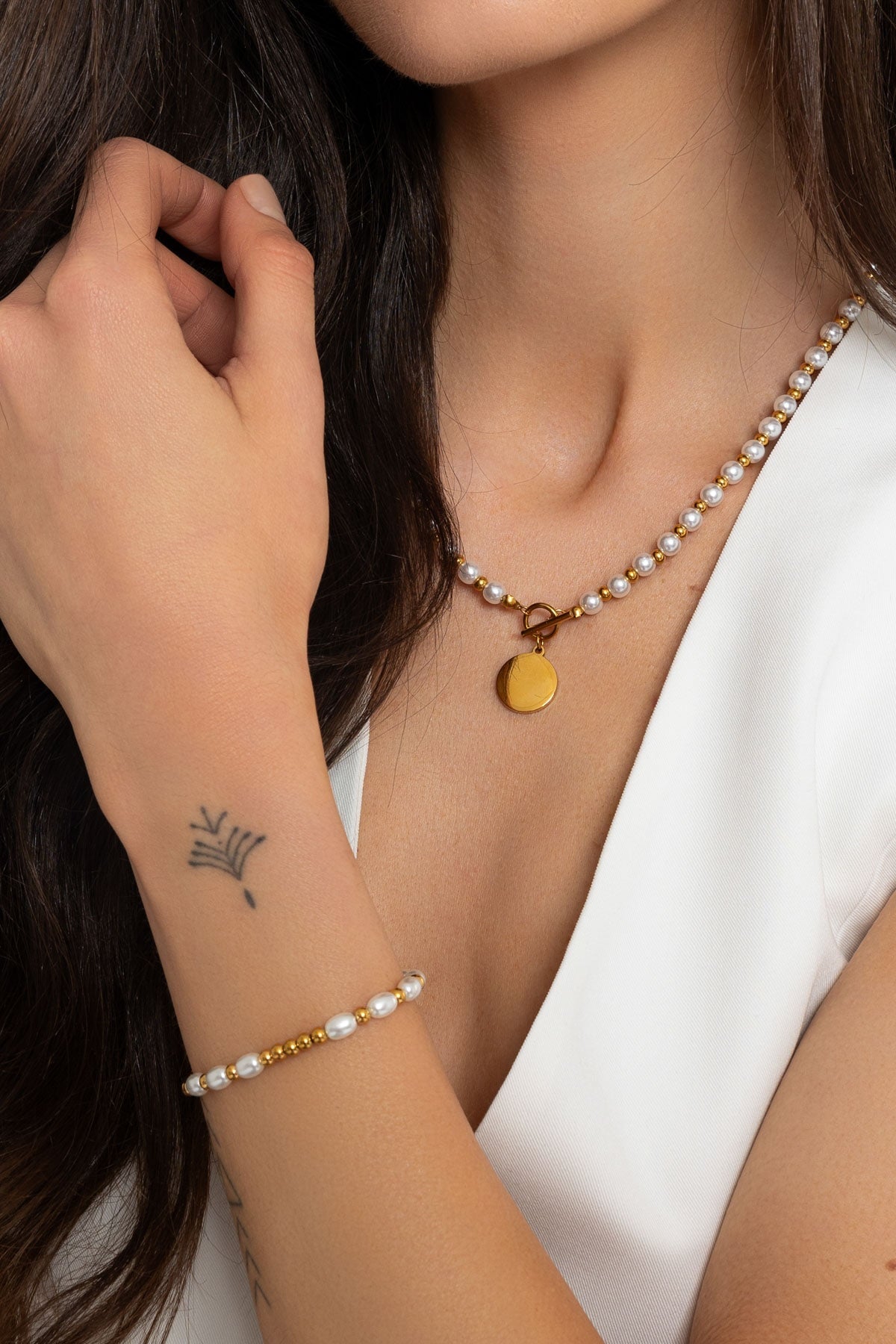 Beaded Pearl Bracelet by Joularie. This bracelet is the perfect gift for any occasion, adding a touch of sophistication to any jewelry collection.