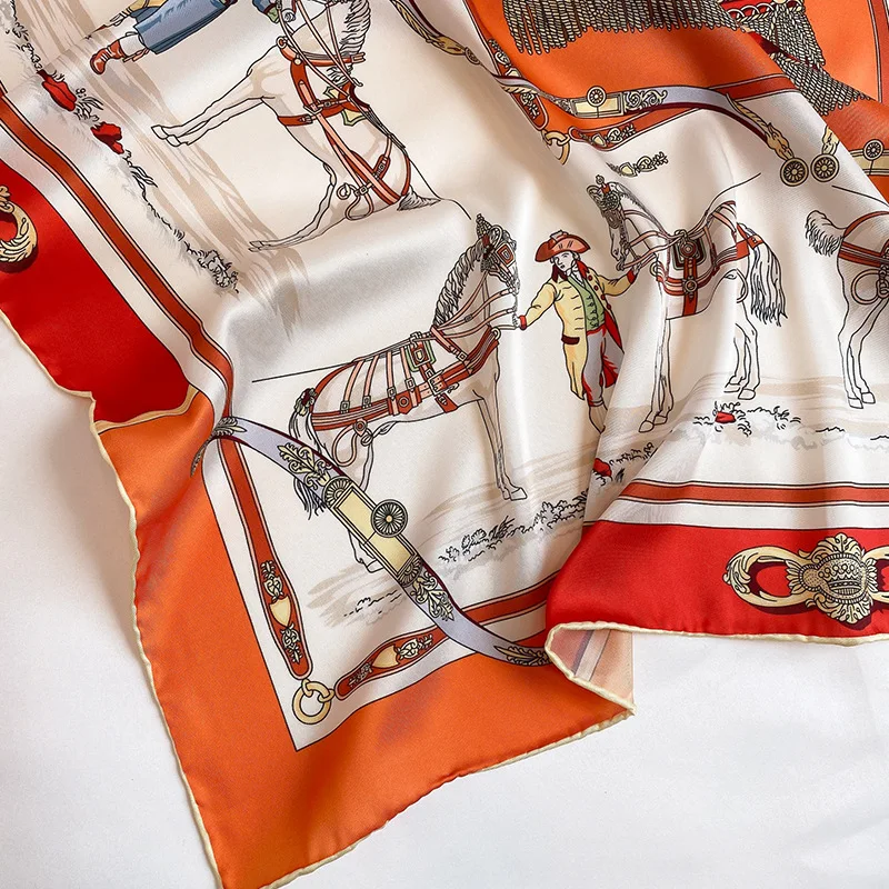 Treat yourself to one of our fabulously silky scarves, featuring a beautiful traditional equestrian print.