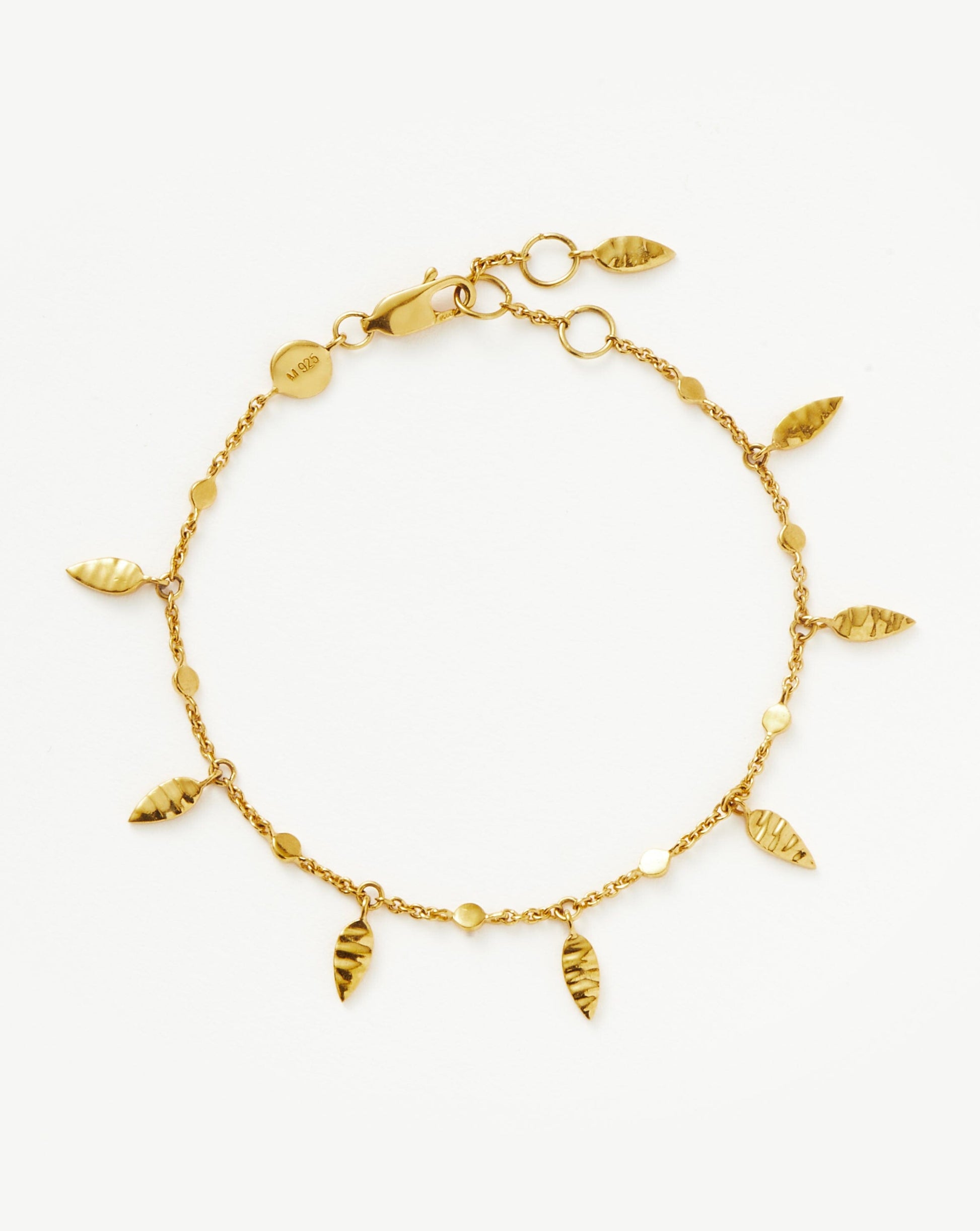 A best selling layering piece. Featuring leaf charms with a hammered finish, this distinctive bracelet is the ultimate upgrade for your arm stack. Let it shine solo or team with our cuffs and chains for a more impactful look.