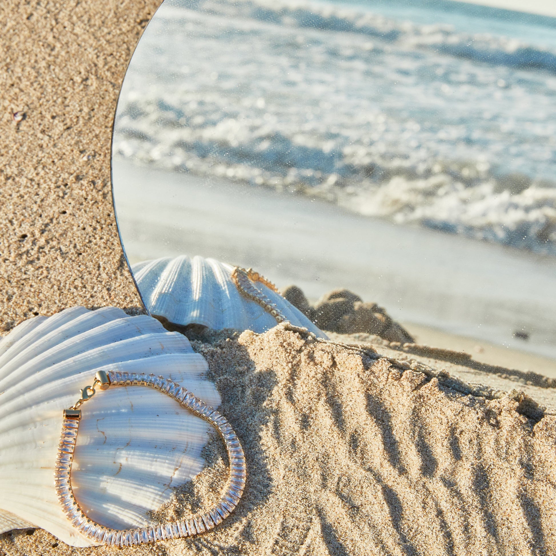 Our Making waves is a handmade baguette style CZ ankle bracelet in the options of 18k gold plated and stainless steel. Water resistant so it’s perfect for the beach!