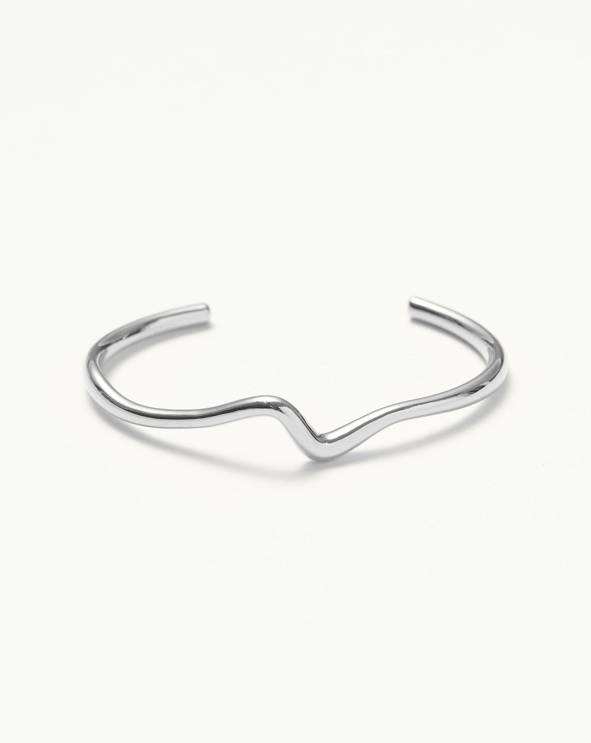 Make it molten. This simple cuff bracelet has an organic shape with wavy detailing. Designed to slide on easily, wear solo or pair with chunky chains to create a bold arm stack.