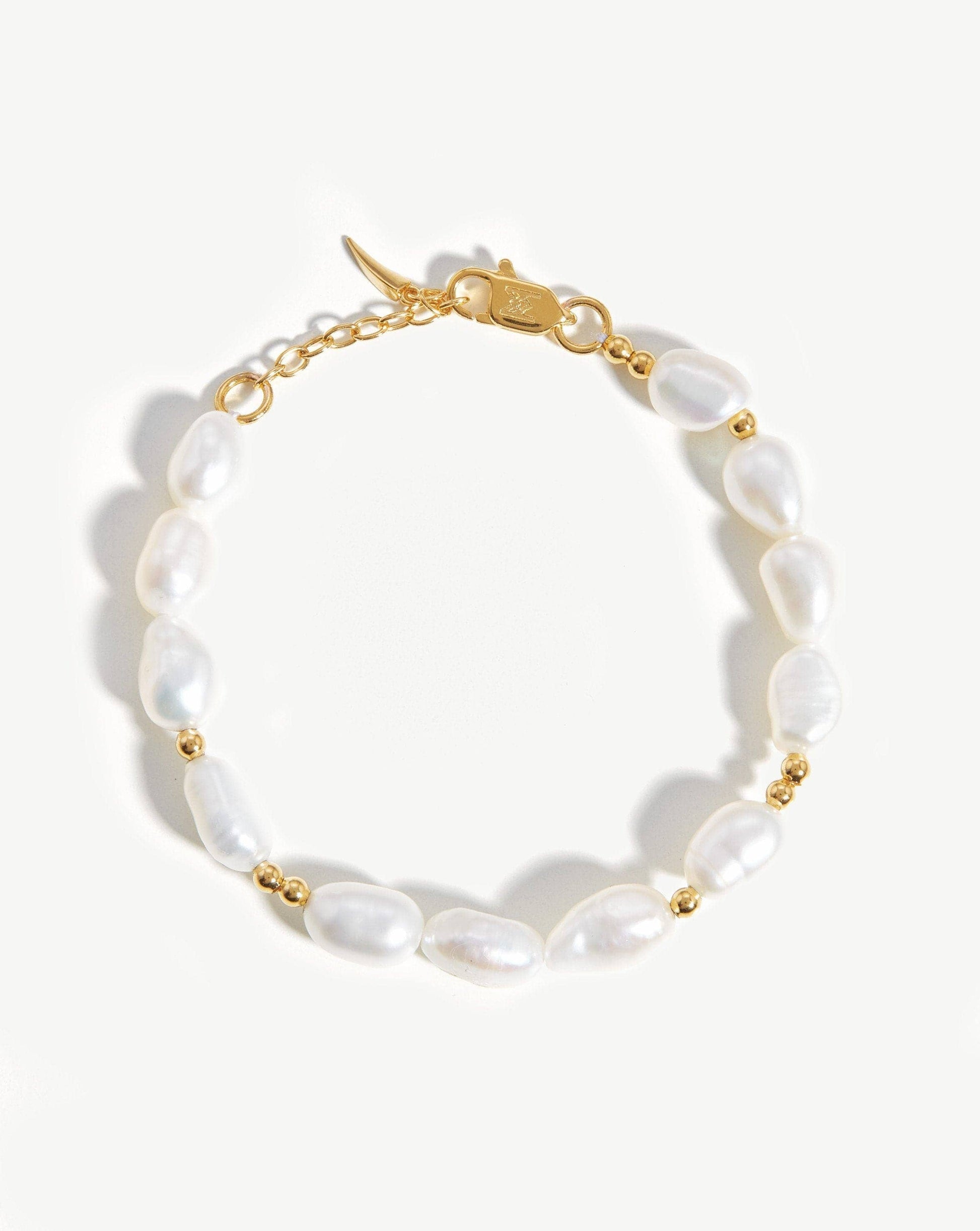 Inspired by natural forms. Bringing wisdom and knowledge, unique irregular freshwater pearls form this bracelet, contrasted and offset with small gold beads for a standout finish. The ultimate way to add texture to your arm stack. Pair with the pearl beaded necklace.