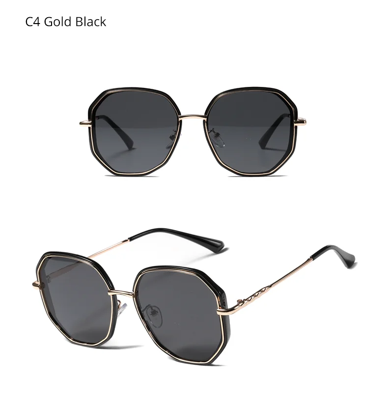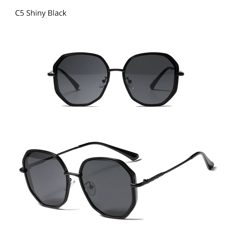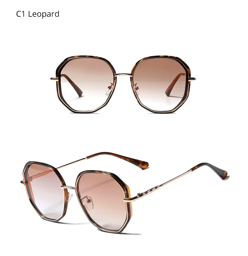 With a polygon frame shape, these sunglasses exude confidence and individuality. The oversized lenses not only provide ample coverage but also offer 100% UV protection, shielding your eyes from harmful rays. Made with high-quality polycarbonate lenses, these sunglasses are lightweight and durable, ensuring long-lasting wear.